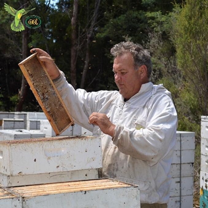 タスマニアハニーのレザーウッドハニーは、島の西部にある世界遺産の熱帯雨林の森が採蜜地。この地域に立ち入りできるのは、政府の許可を得た養蜂家に限られます。タスマニアの固有品種のレザーウッドは、樹齢100年程になると漸く花の蜜が採れるようになり、樹齢170~210年ぐらいの樹が最も多くの花を咲かせます。開花時期には、スタッフは森でキャンプをしながら採蜜します。