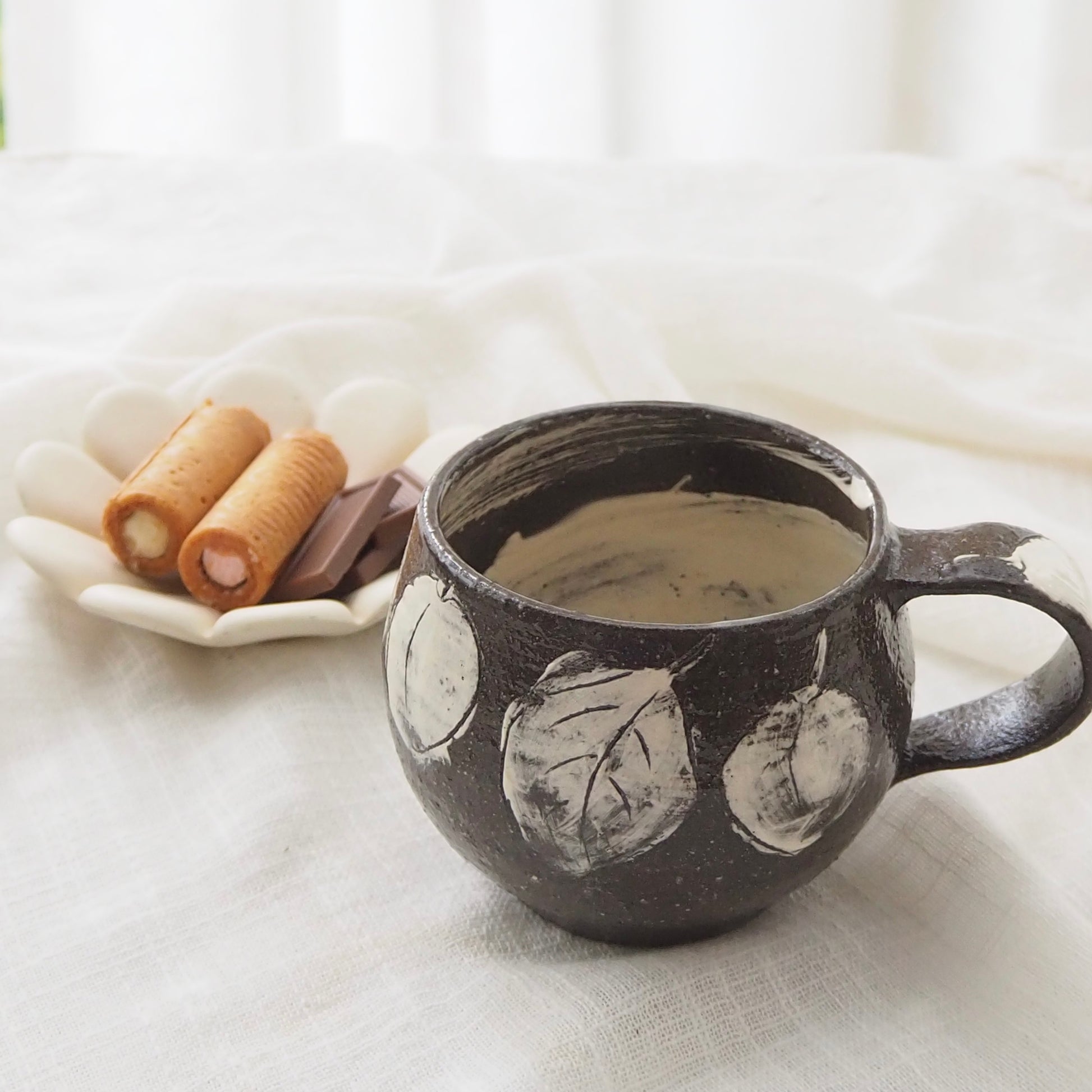 大畠穏さんのマグカップ「monotone leaf(リーフ)」(刷毛目)