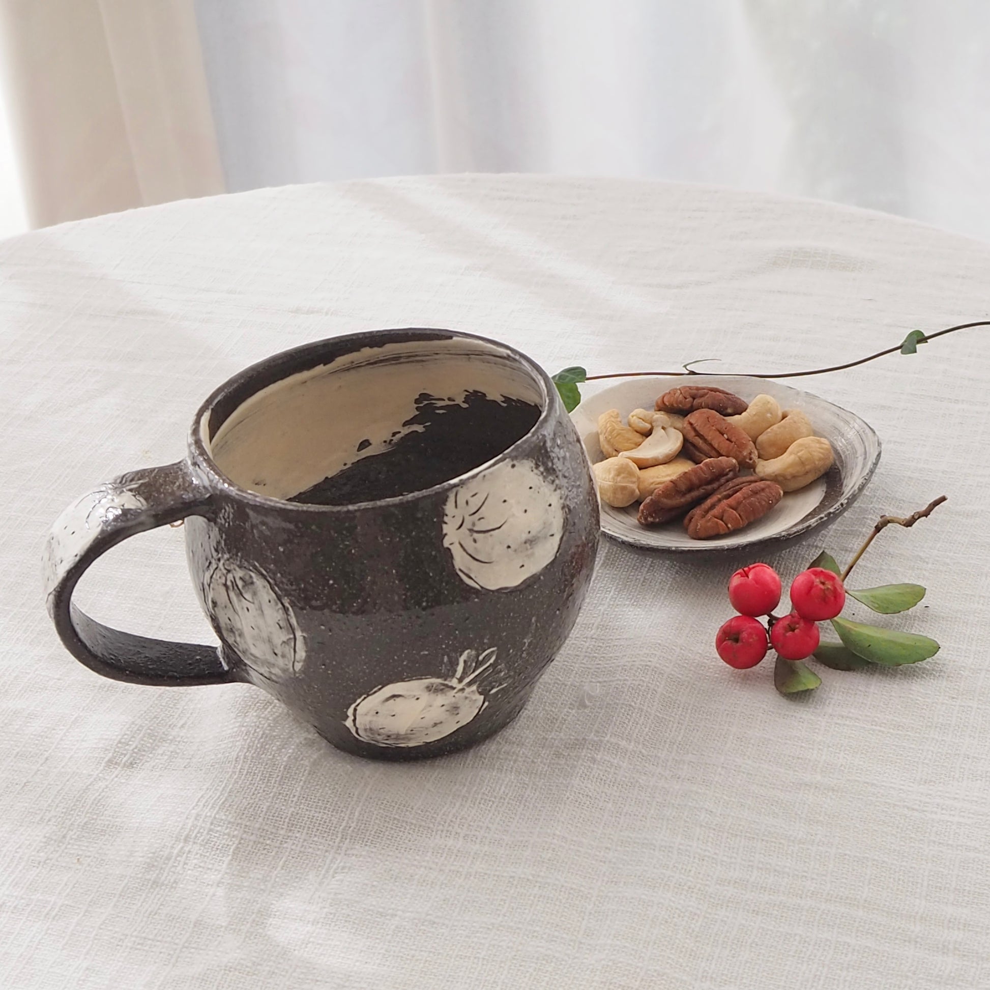大畠穏さんのマグカップ「monotone strawberry(イチゴ)」(刷毛目)