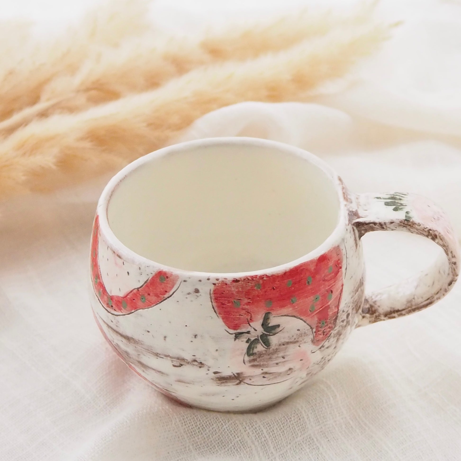 大畠穏さんのマグカップ「ichigo(イチゴ)」(粉引・絵付け)