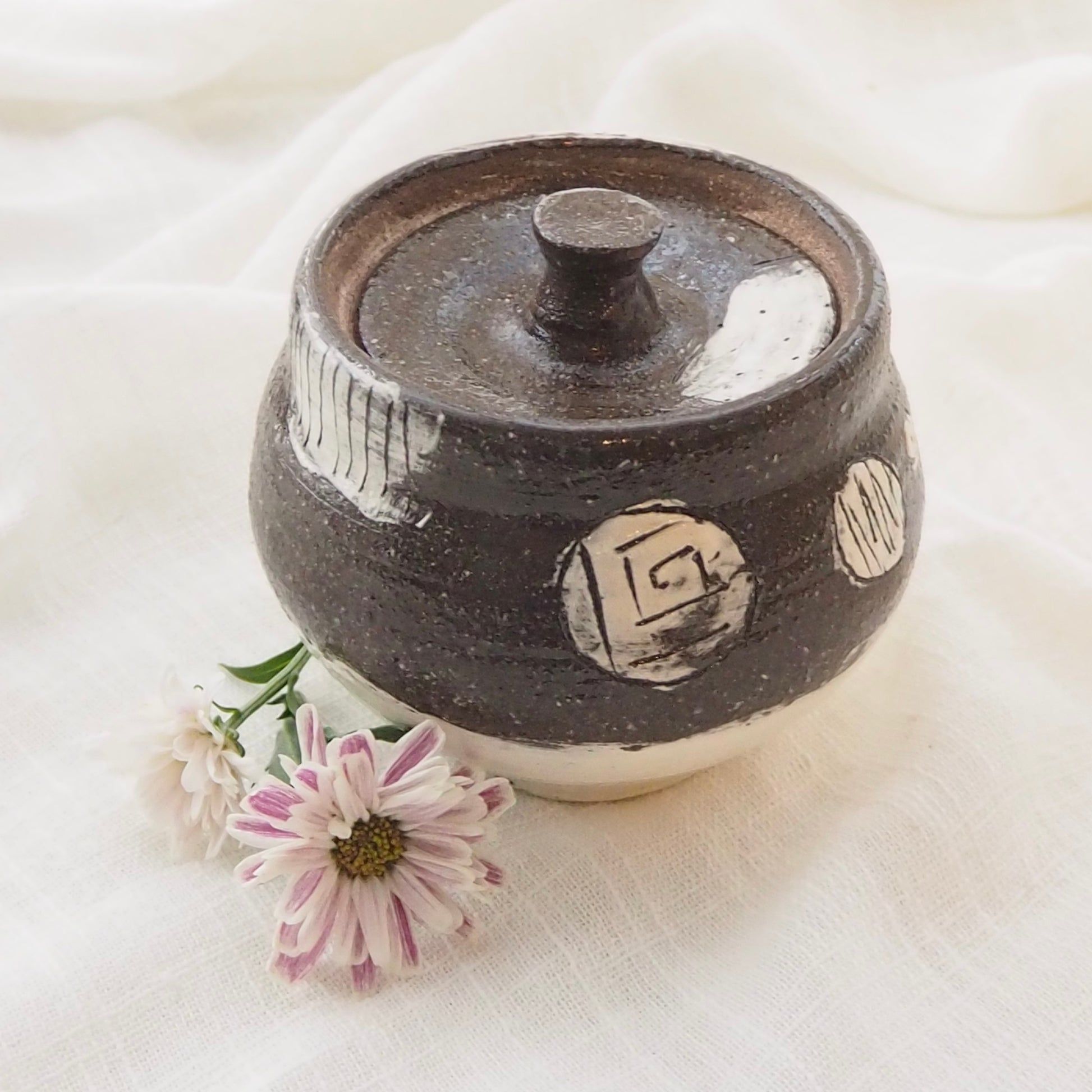大畠さんの器があまりに素敵で大好きなので、これまた、大好きな「梅干」を入れて保存できるような器を作ってほしい!と大畠さんに無理やりお願いして作ってもらった「梅干しポット」シリーズです。絵柄や形は大畠さんのセンスにお任せして、できた器はやっぱり素敵!