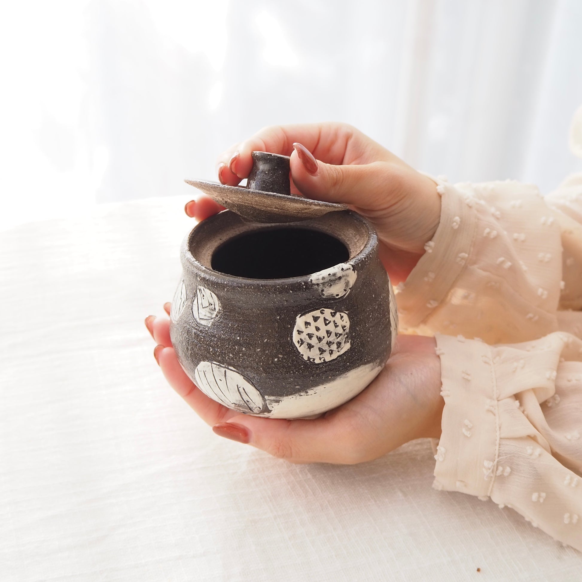 大畠さんの器があまりに素敵で大好きなので、これまた、大好きな「梅干」を入れて保存できるような器を作ってほしい!と大畠さんに無理やりお願いして作ってもらった「梅干しポット」シリーズです。絵柄や形は大畠さんのセンスにお任せして、できた器はやっぱり素敵!