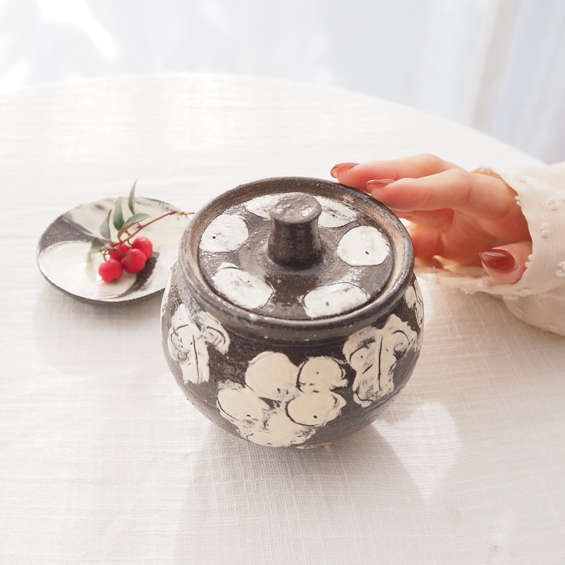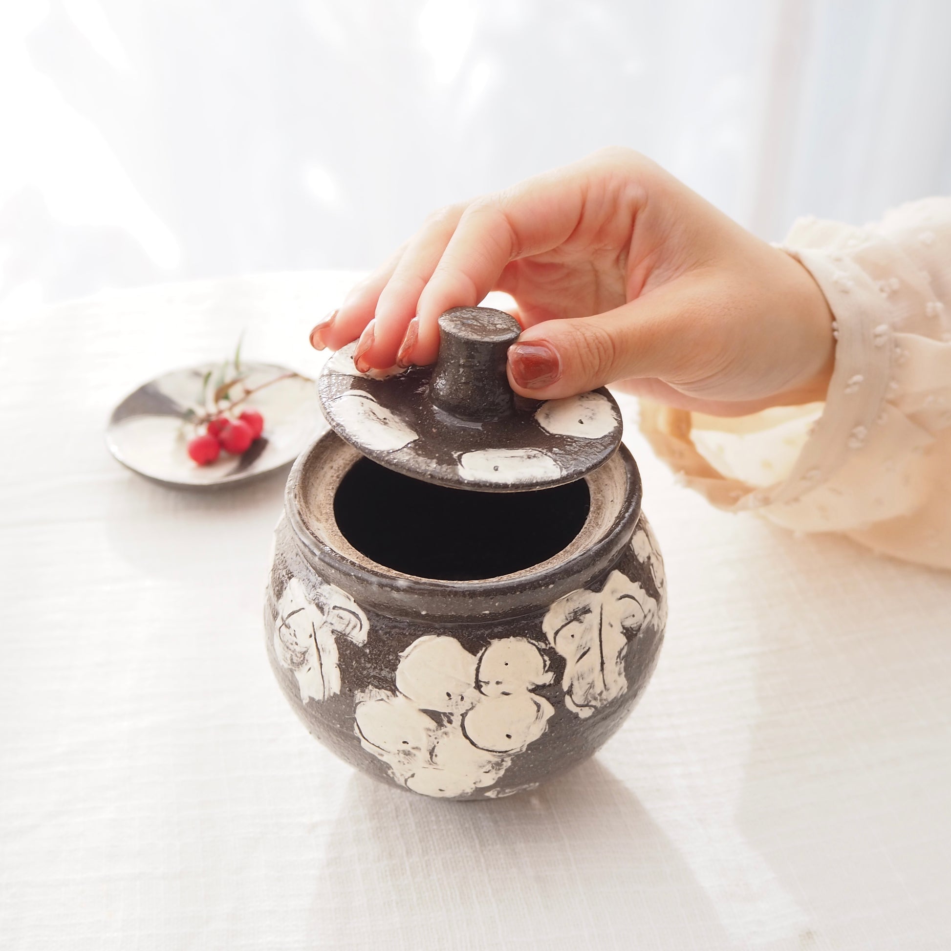 大畠さんの器があまりに素敵で大好きなので、これまた、大好きな「梅干」を入れて保存できるような器を作ってほしい!と大畠さんに無理やりお願いして作ってもらった「梅干しポット」シリーズです。絵柄や形は大畠さんのセンスにお任せして、できた器はやっぱり素敵!