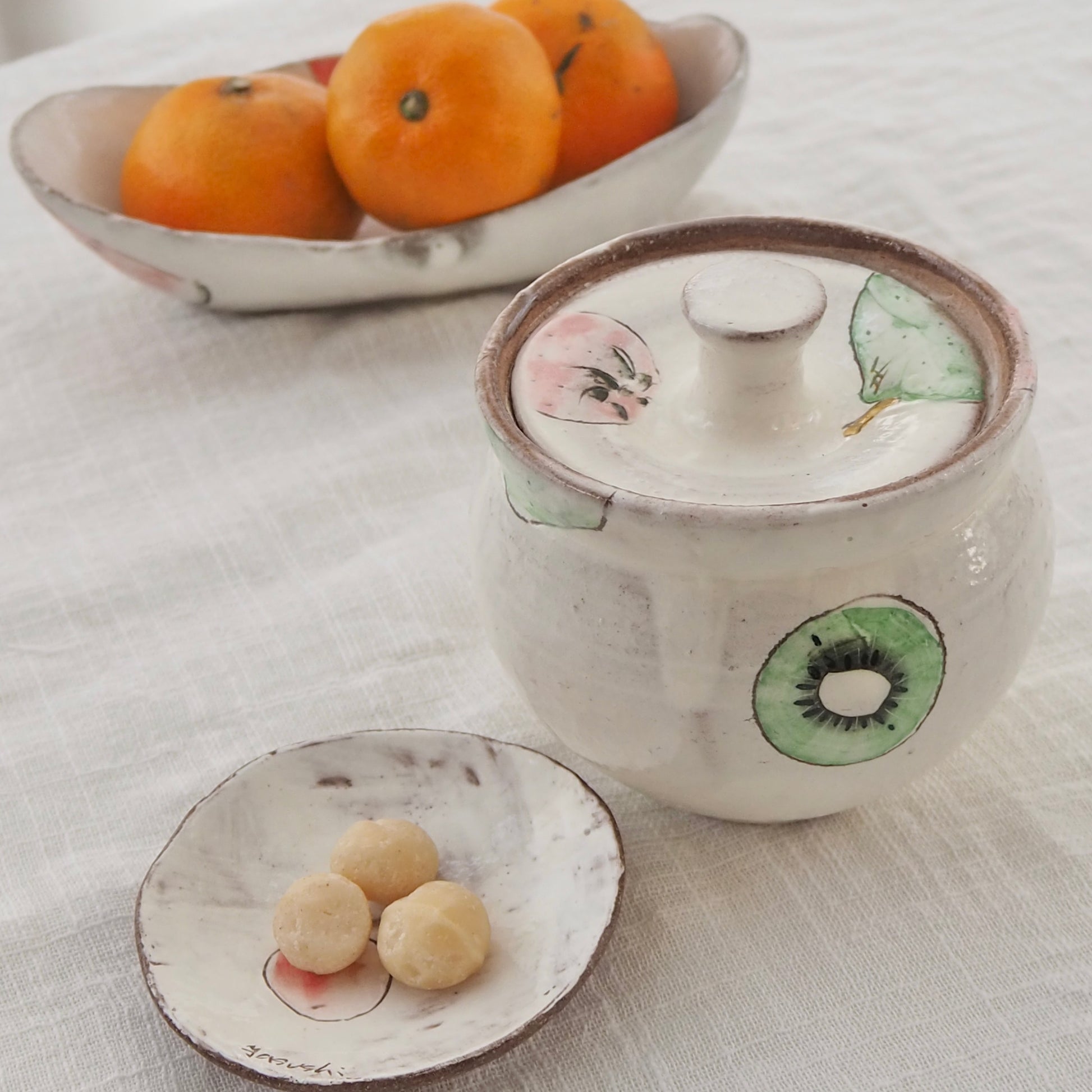 大畠穏さんの器 ポット「fruits(フルーツ)」(粉引・絵付け)