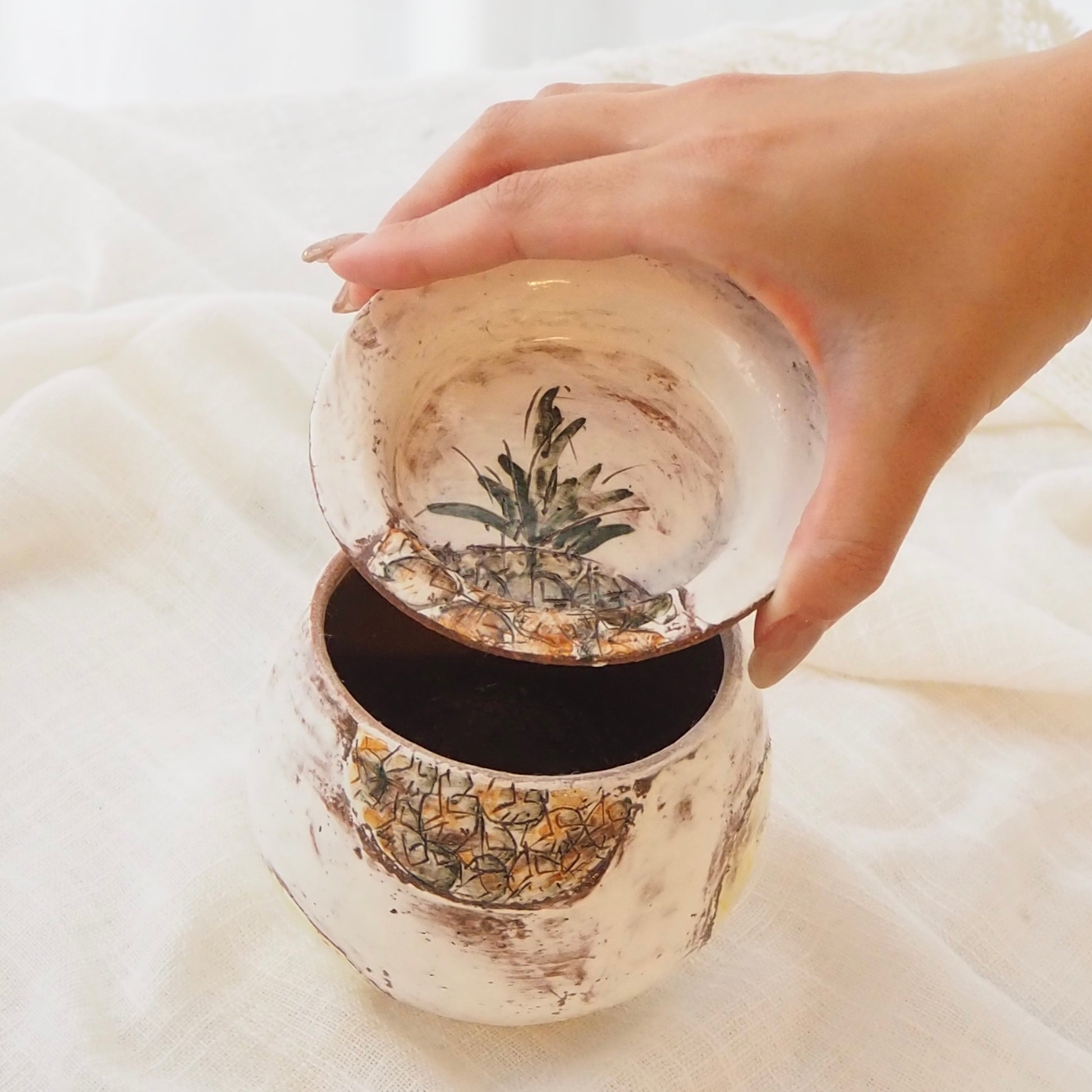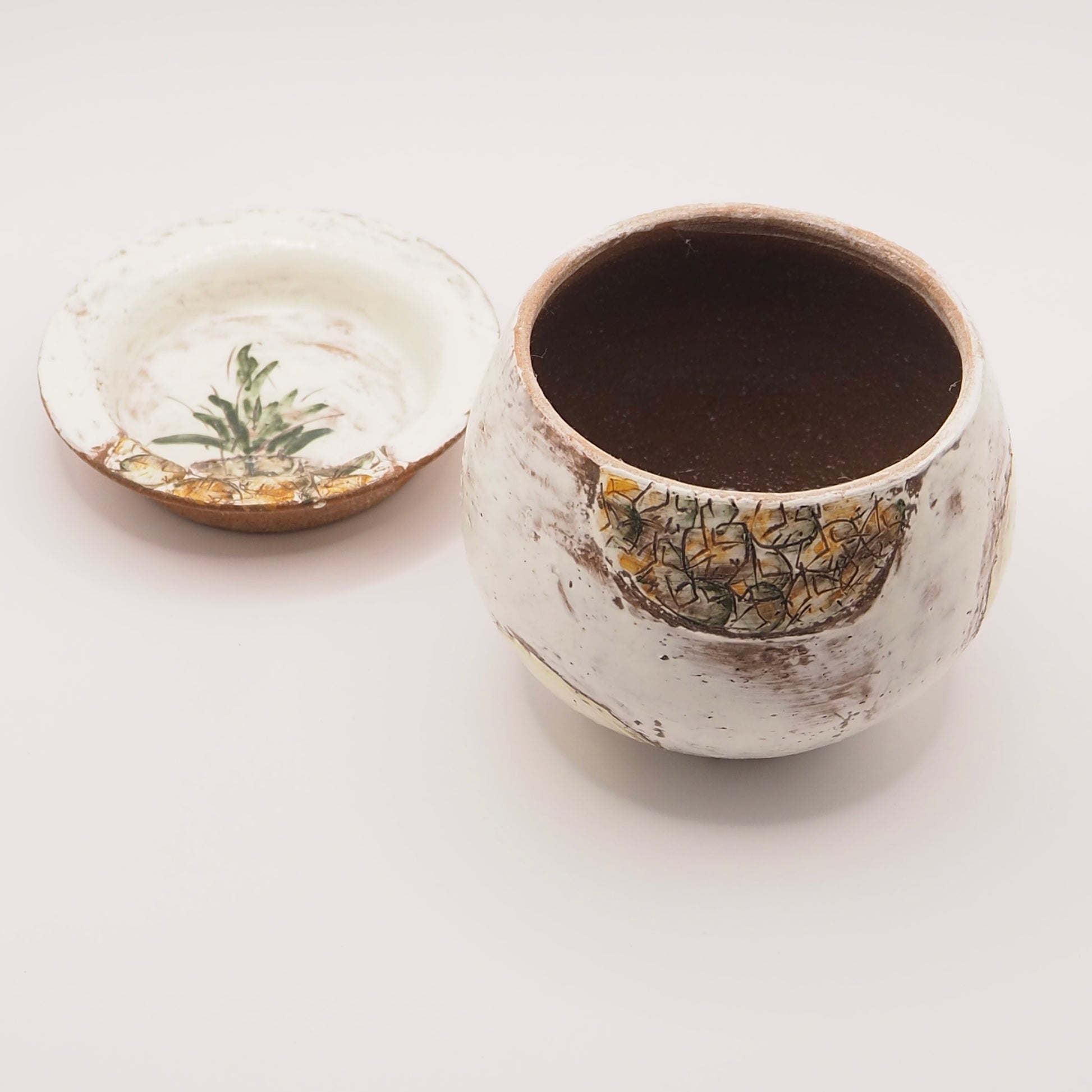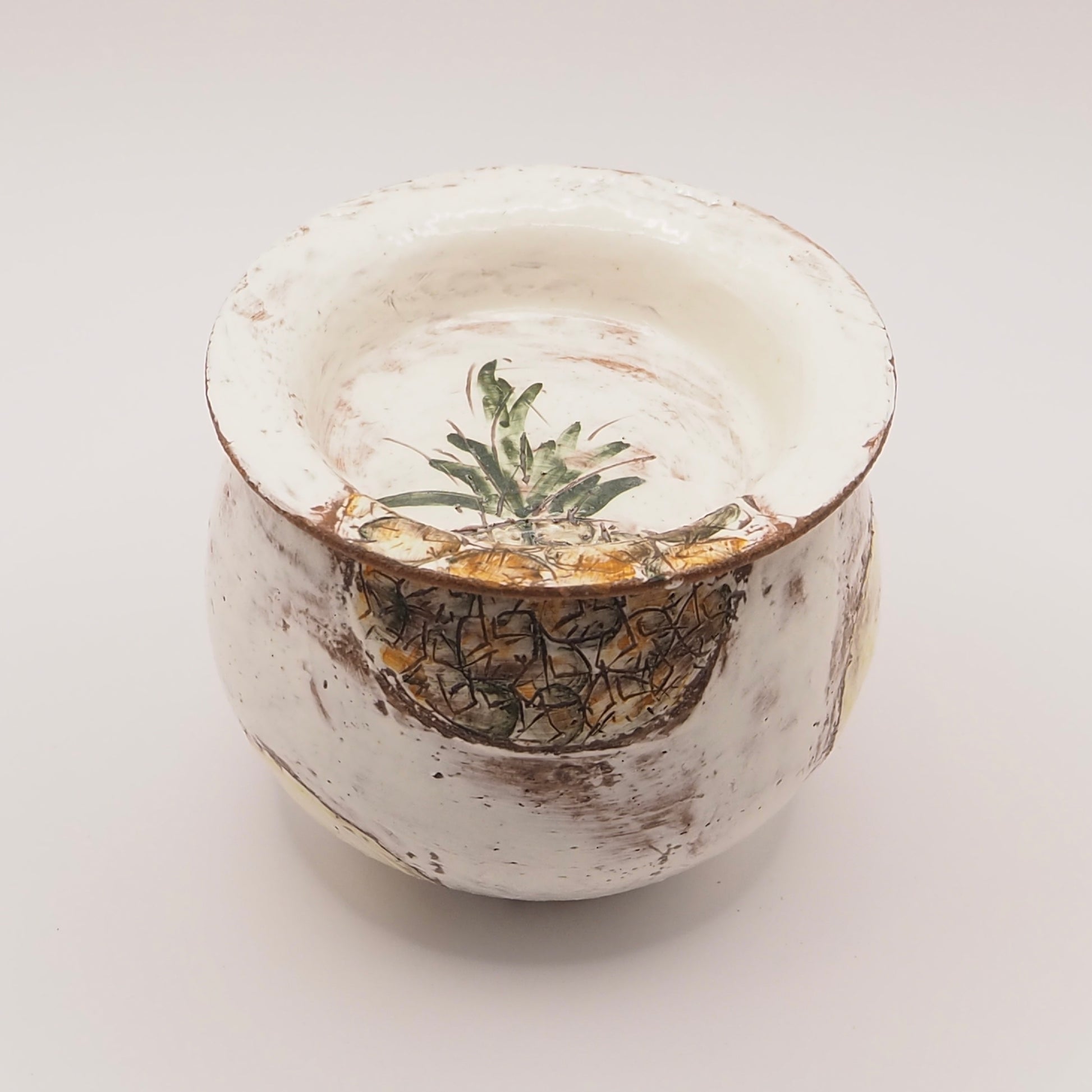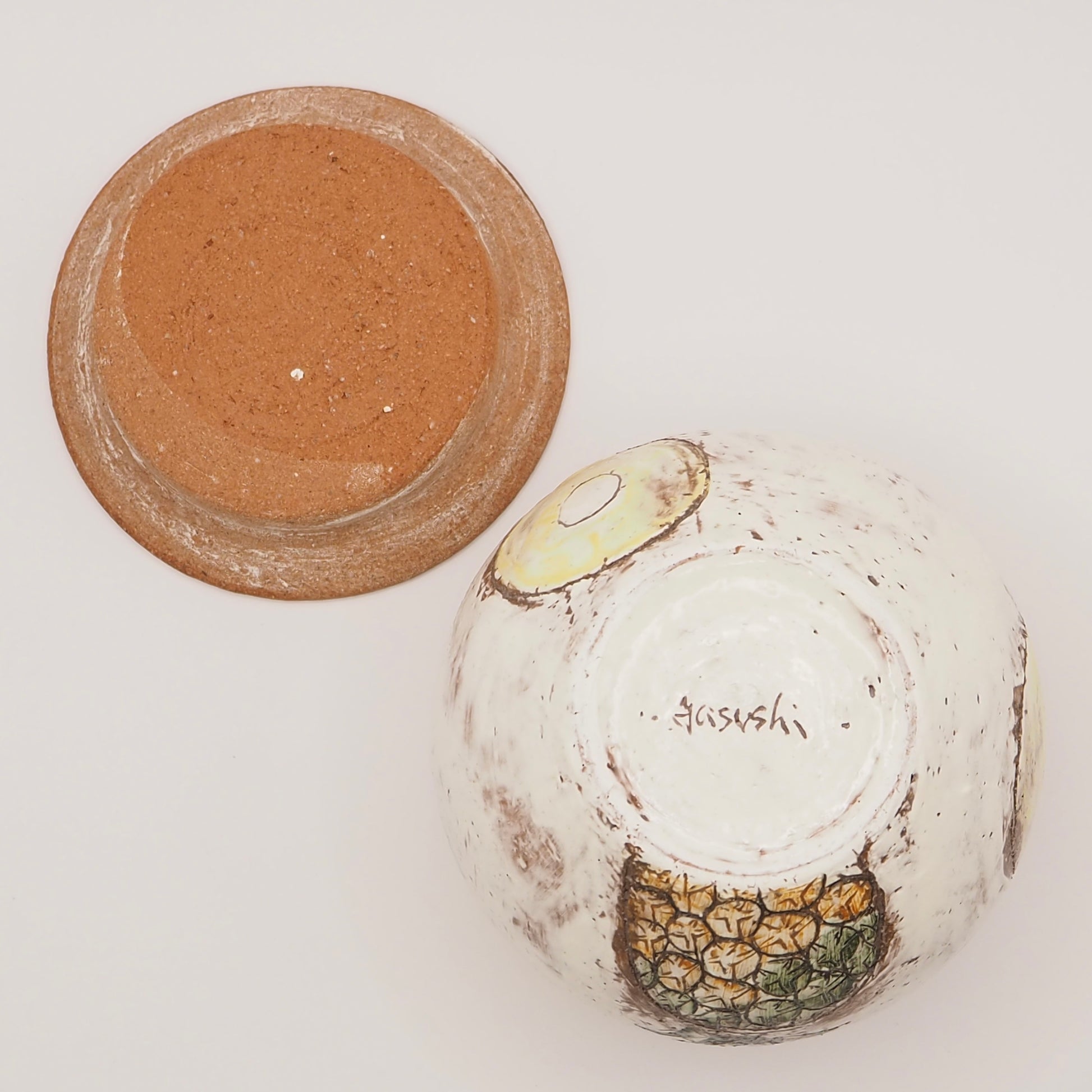 大畠穏さんの器 ポット「 Pineapple (パイナップル)」(粉引・絵付け・貼合わせ)
