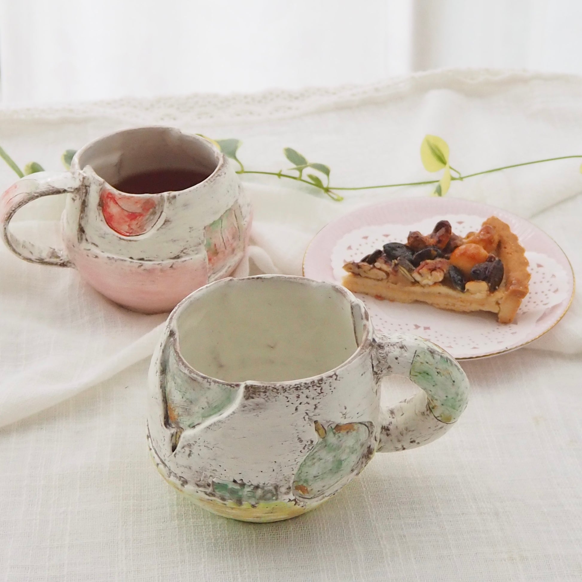 大畠穏さんのマグカップ「pear(洋なし)」(粉引・絵付け・貼合わせ)