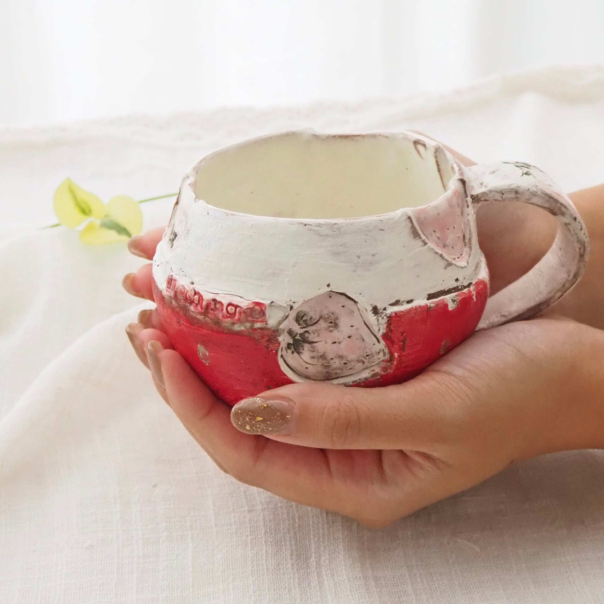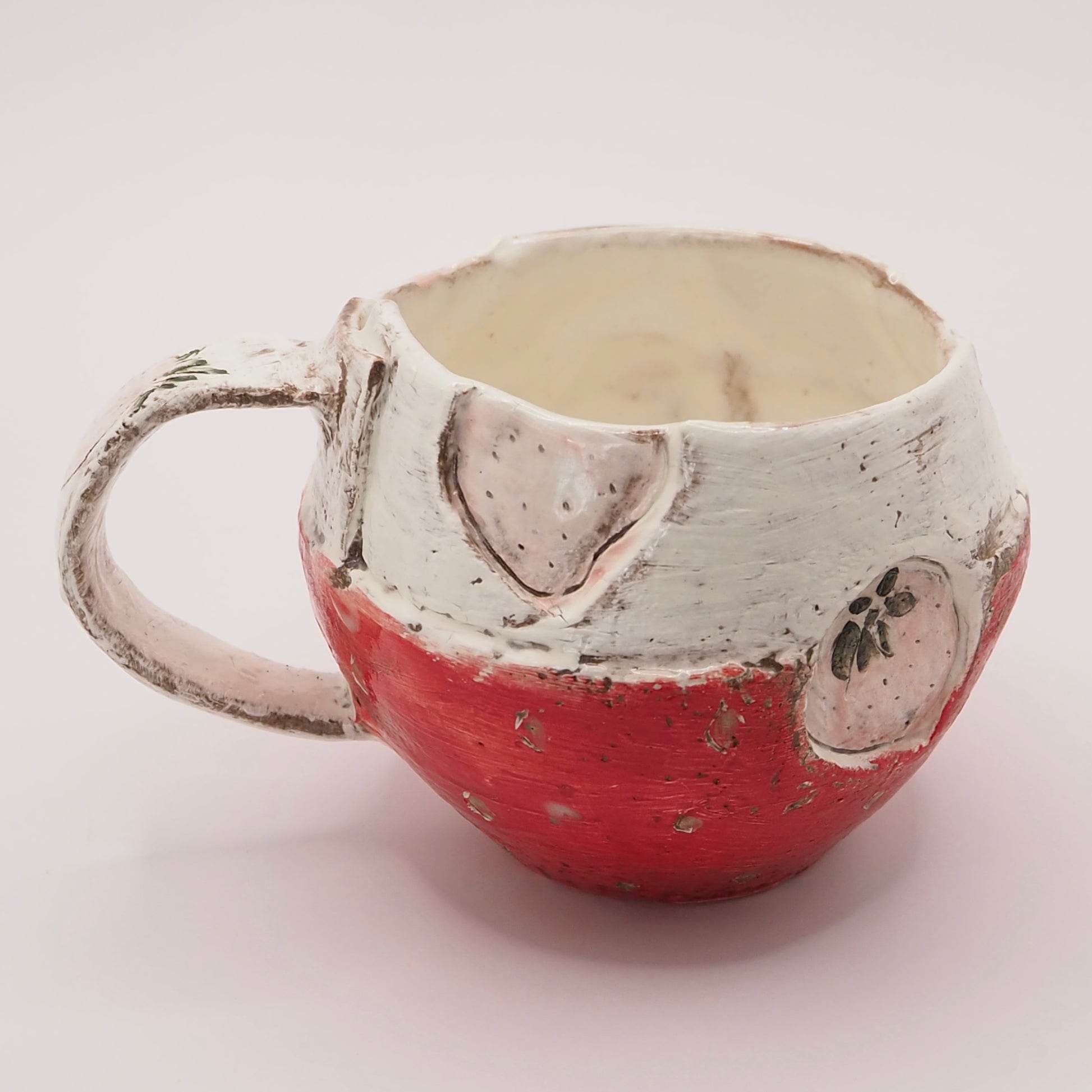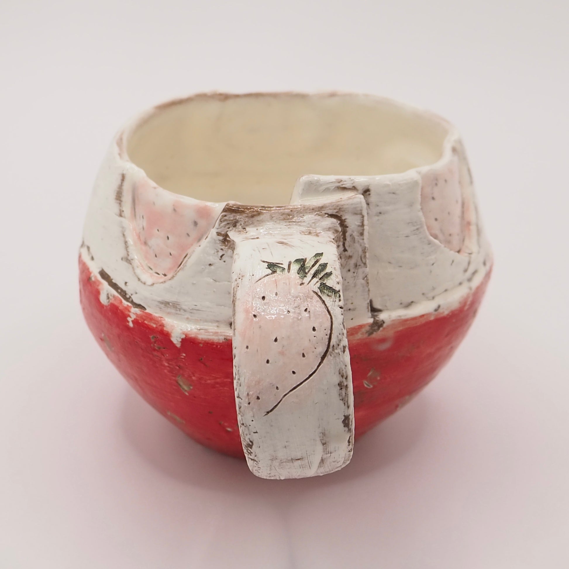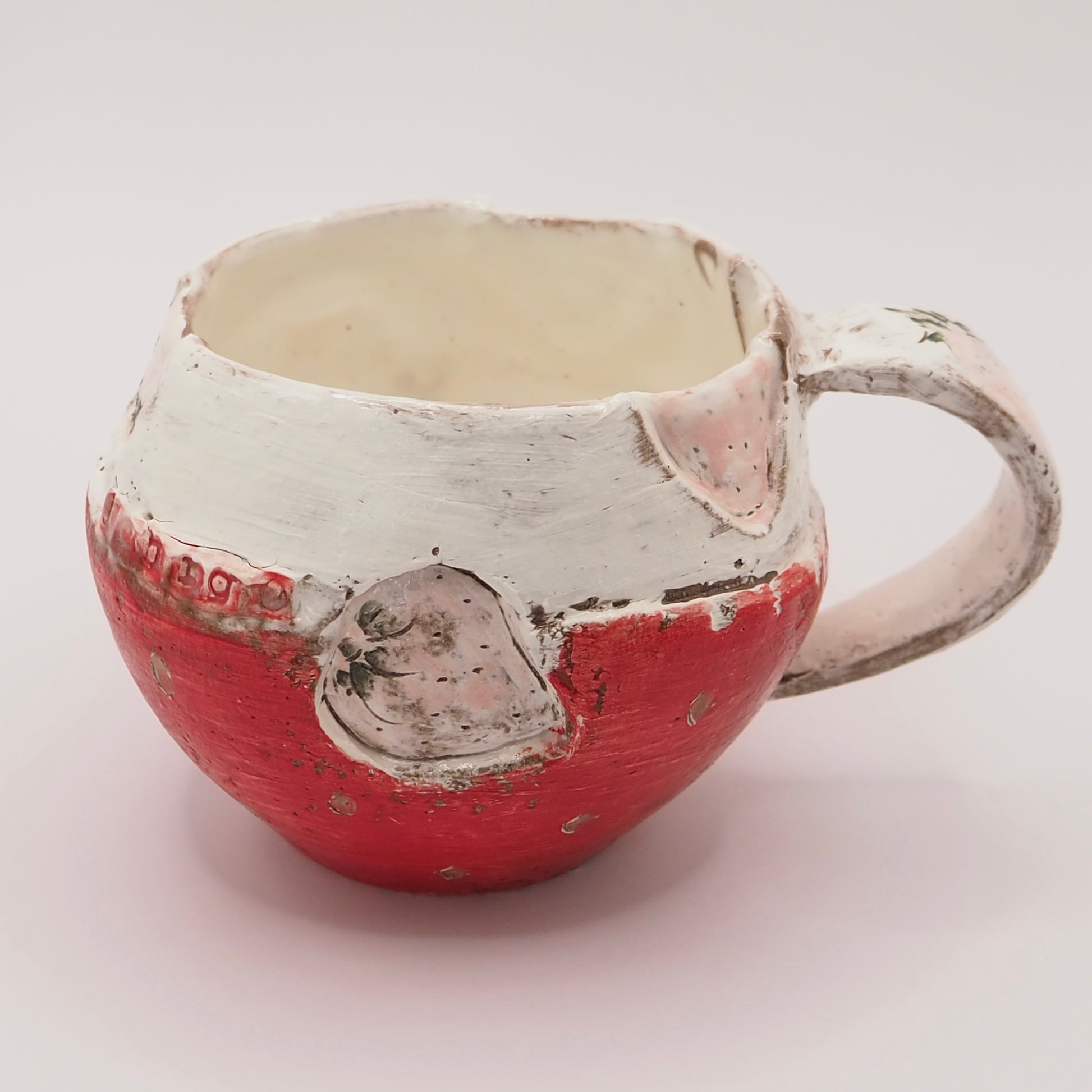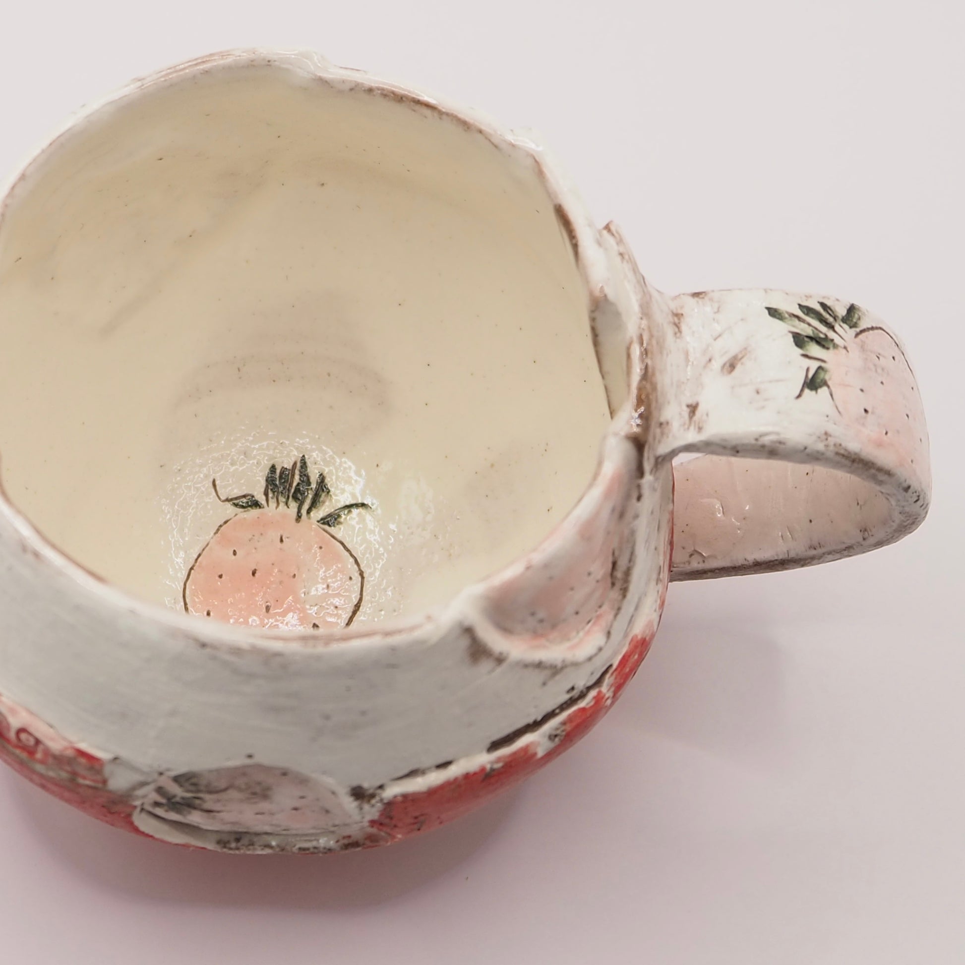 大畠穏さんのマグカップ「ichigo(いちご)」(粉引・絵付け・貼合わせ)